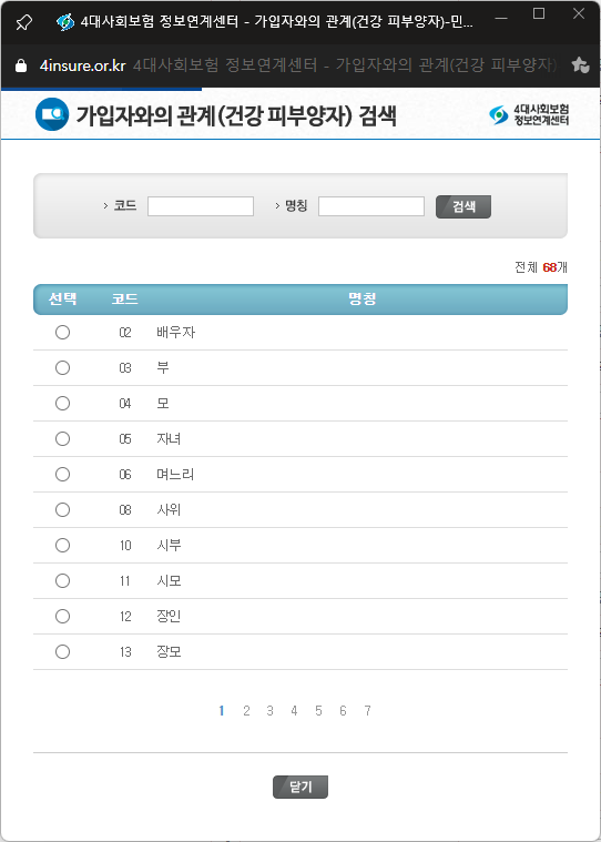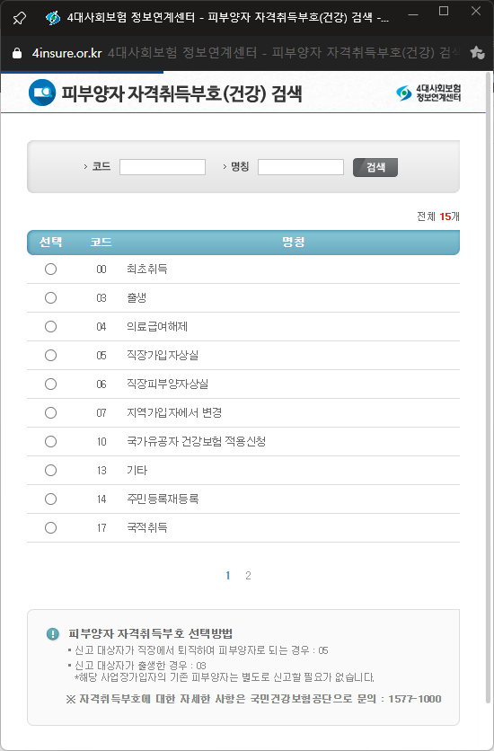 피부양자 자격취득부호 선택방법에 있는 내용 확인으로 알았네요.