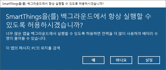 사진과 같이 검색화면에 smartthings를 입력하면 바로 검색이됩니다.