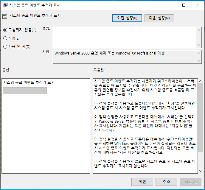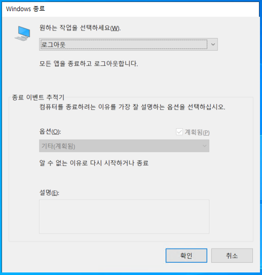 위와 같이 "종료 이벤트 추적기" 작동으로 인하여 바로 종료를 할 수 있습니다.