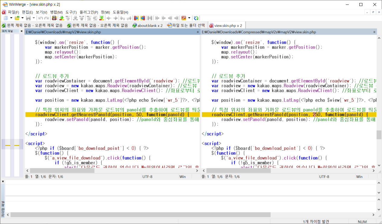 기존에 작업한 소스코드의 변경내역을 보기 위해서 주로 이용하는 프로그램입니다.
