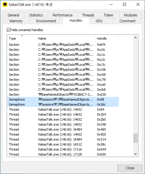 그리고 Type 정렬을 눌러서 정렬을 하고 Semaphore 를 찾아봅니다.