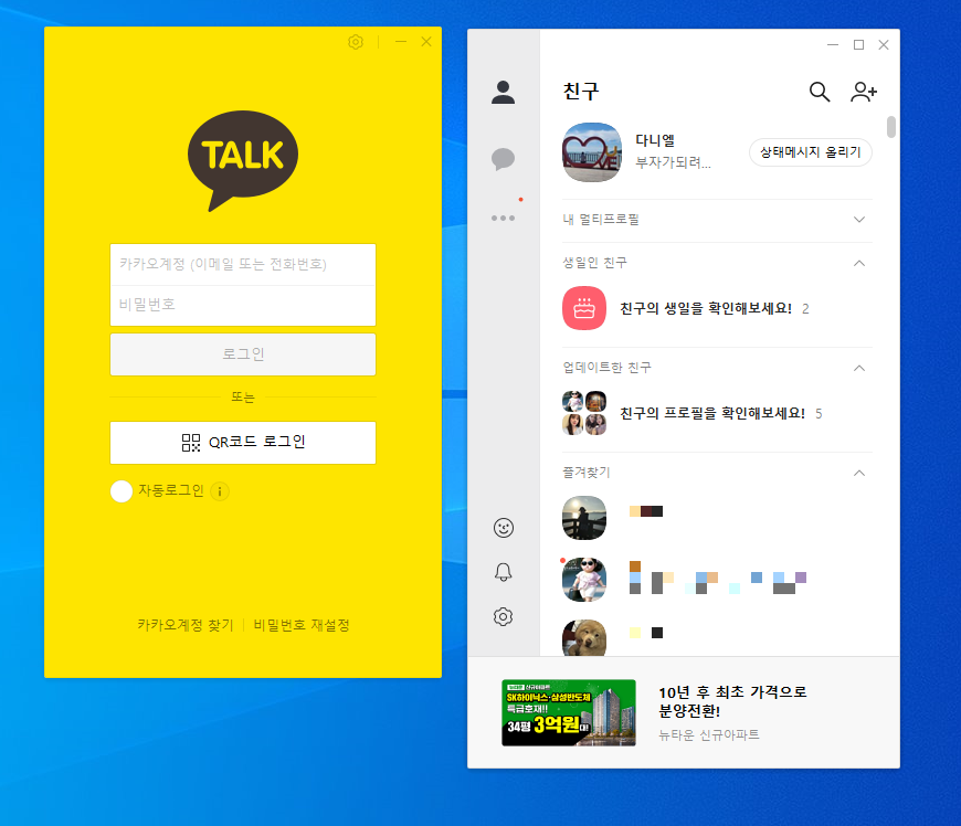 그리고 새로뜬 카톡에 로그인을 하시면 끝~~